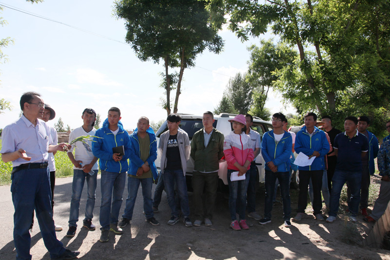 2017年張掖市多成農(nóng)業(yè)有限公司組織各部門員工對(duì)本年度生產(chǎn)基地長(zhǎng)勢(shì)進(jìn)行觀摩,并邀請(qǐng)市、區(qū)種子部門專家對(duì)田間長(zhǎng)勢(shì)、病蟲害進(jìn)行分析、查看。 苗期長(zhǎng)勢(shì)喜人~期待豐收! 專家為公司員工講解玉米蟲害。 專家對(duì)玉米病害進(jìn)行分析。 |