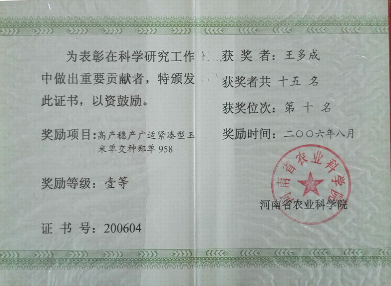 2006年榮獲河南省科學(xué)技術(shù)進(jìn)步獎(jiǎng)